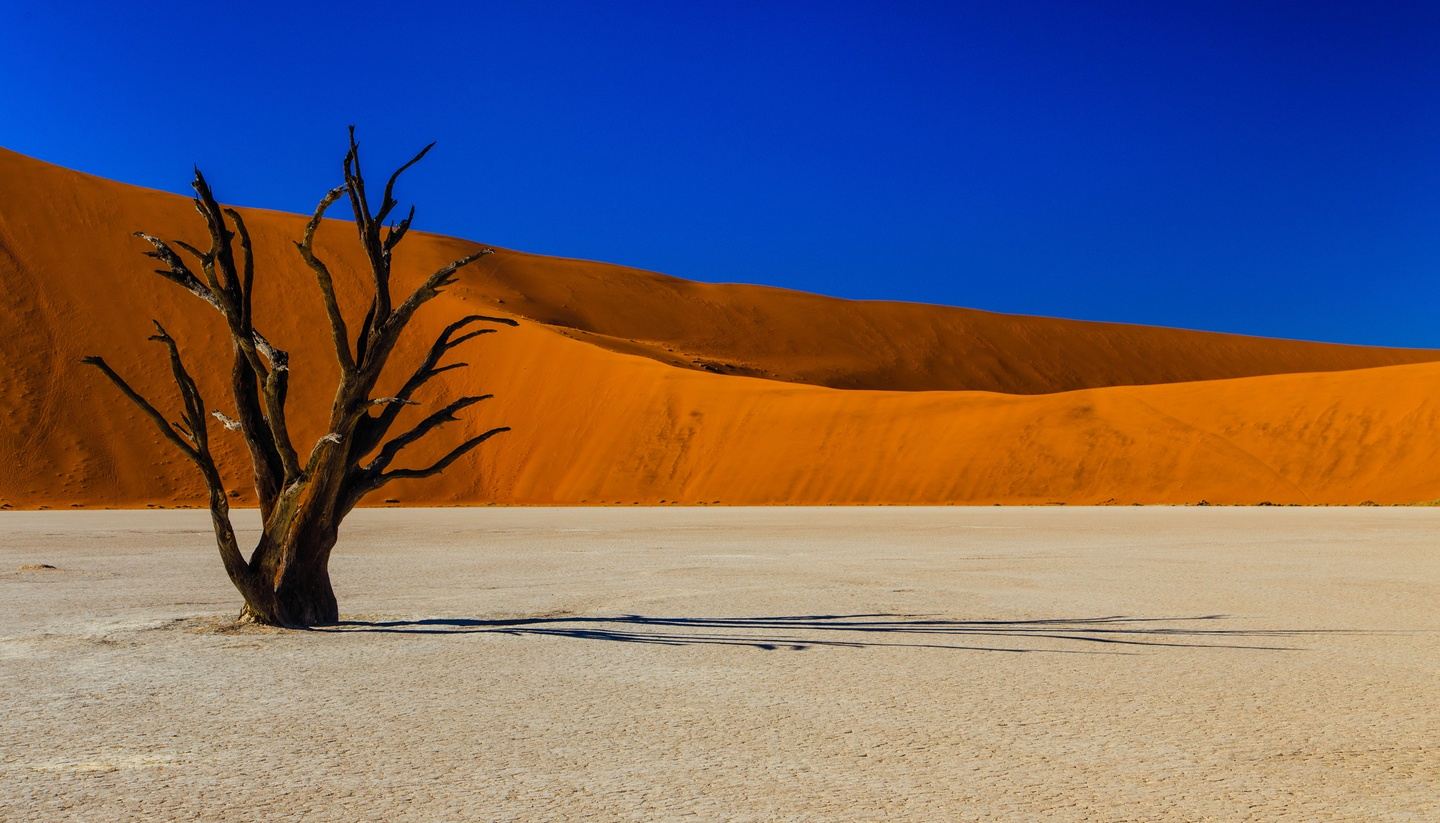 Today is our desert activity day. An early start will allow us to enjoy the early golden light that electrifies the reddish sands of Sossusvlei’s magnificent dunes. Our destination is Dead Vlei with its stunning, picturesque black petrified trees, backed by the golden dunes and blue desert skies. We’ll finish off our morning with an easy hike through Sesriem Canyon, carved millions of years ago by the Tsauchab River. This is an absolutely spectacular photographic day – the clear highlight of the extension. In the afternoon we can arrange an optional scenic flight.